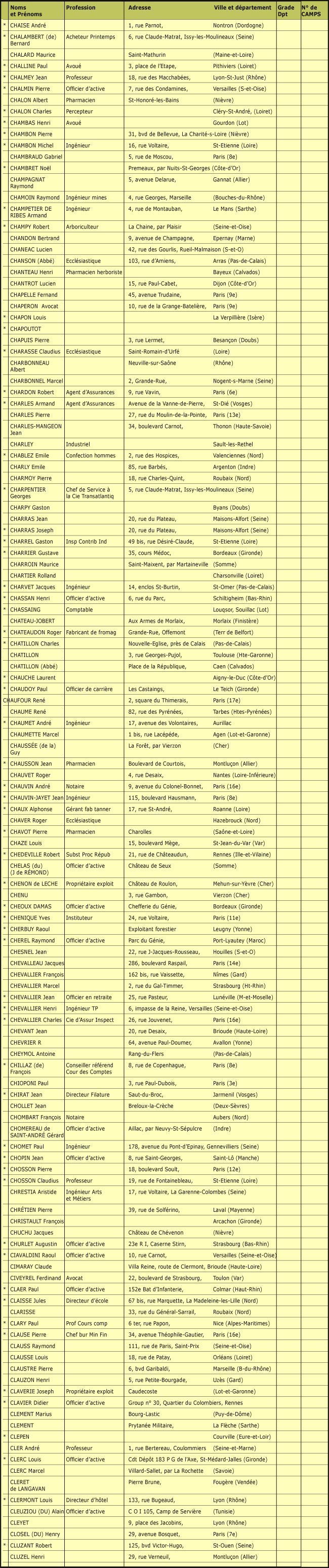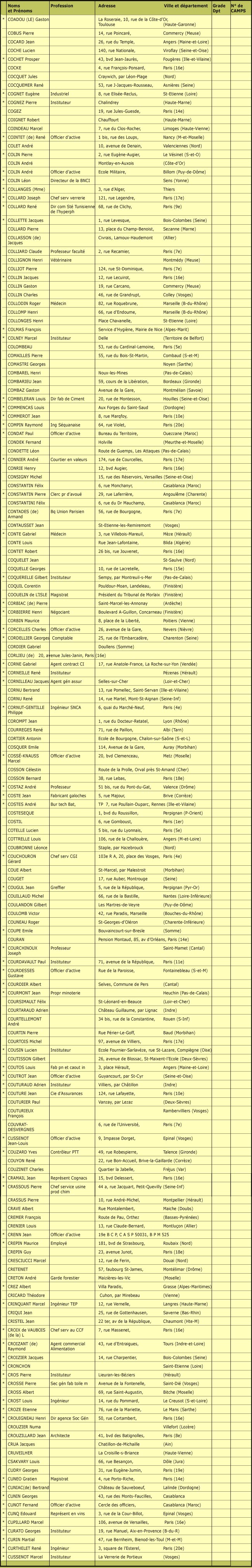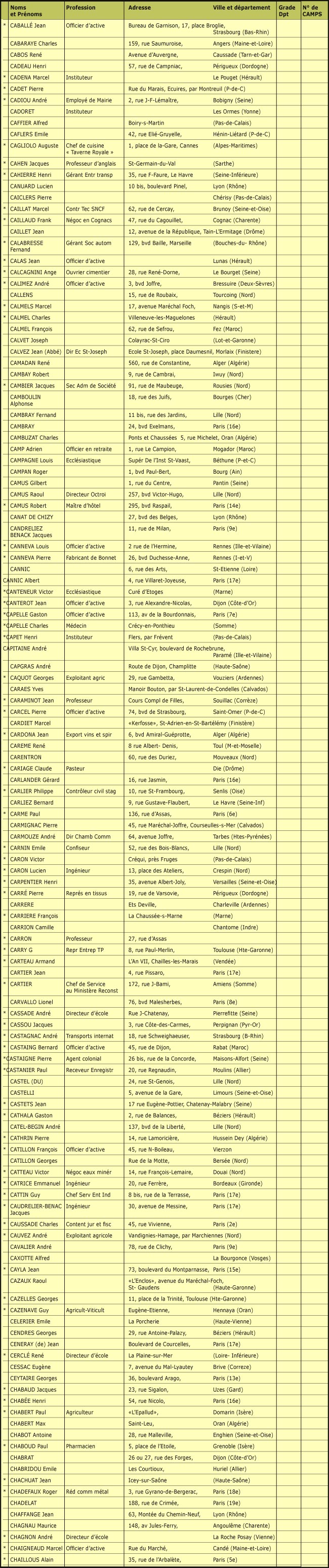 L'étoile (*) placée devant certains noms correspond aux adresses que les dirigeants de l’amicale