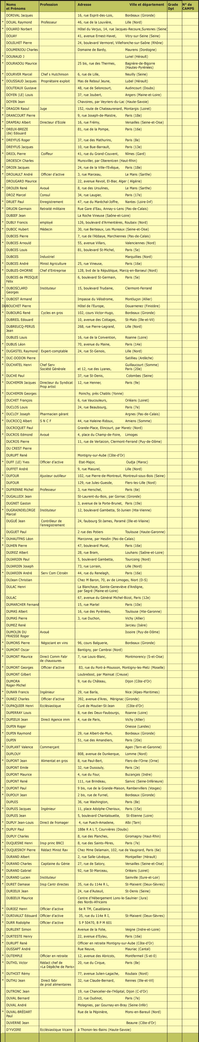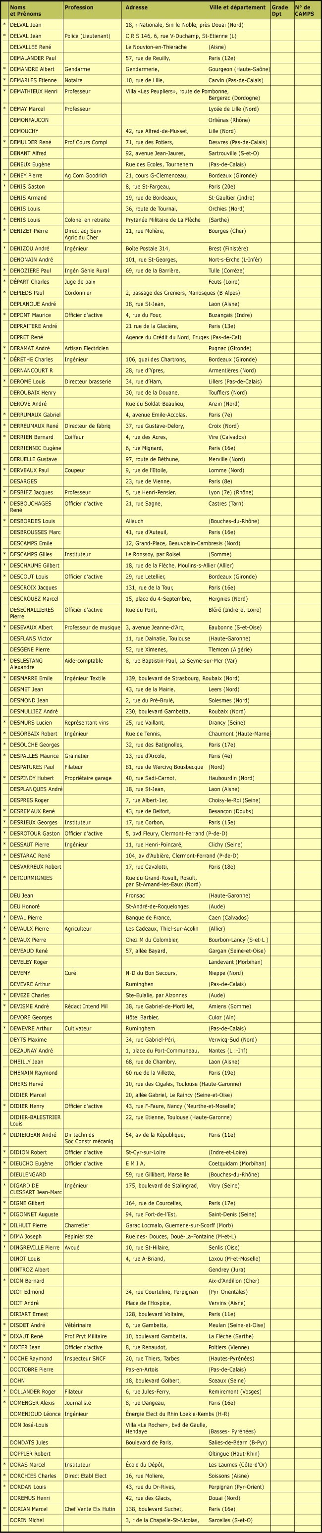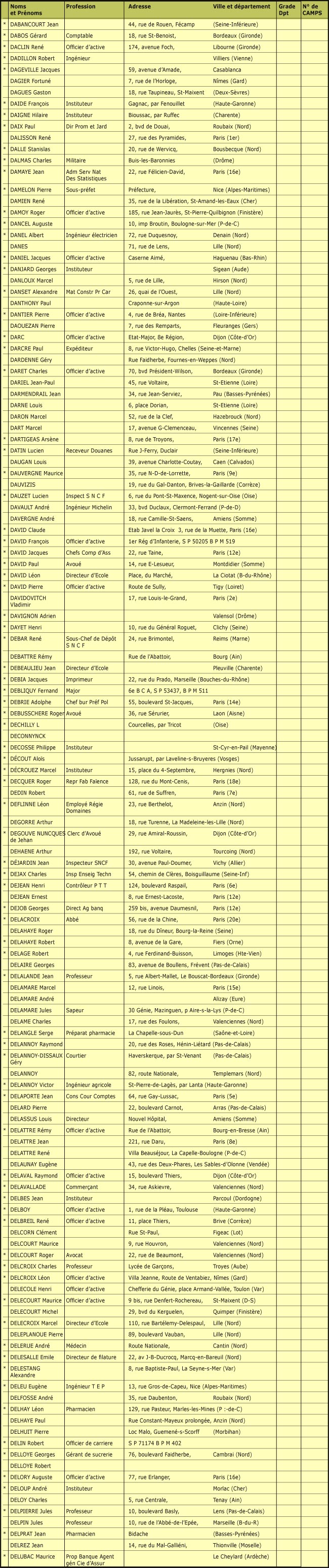 L'étoile (*) placée devant certains noms correspond aux adresses que les dirigeants de l’amicale