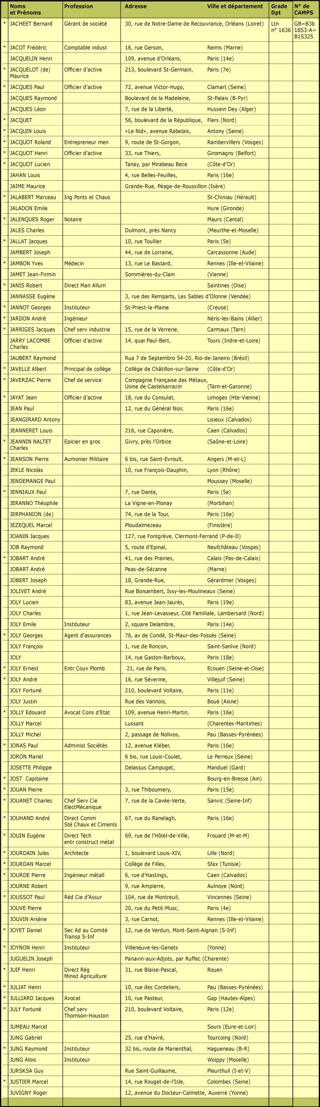 L'étoile (*) placée devant certains noms correspond aux adresses que les dirigeants de l’amicale