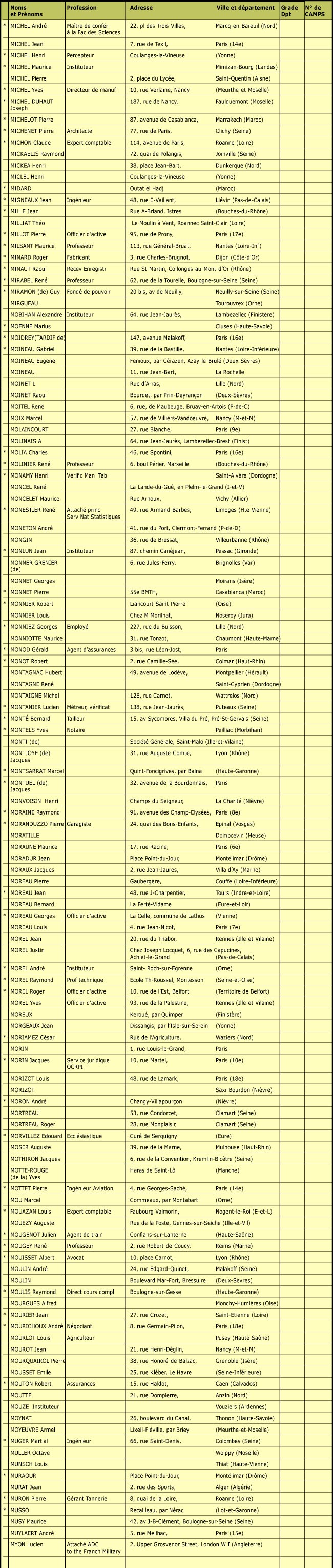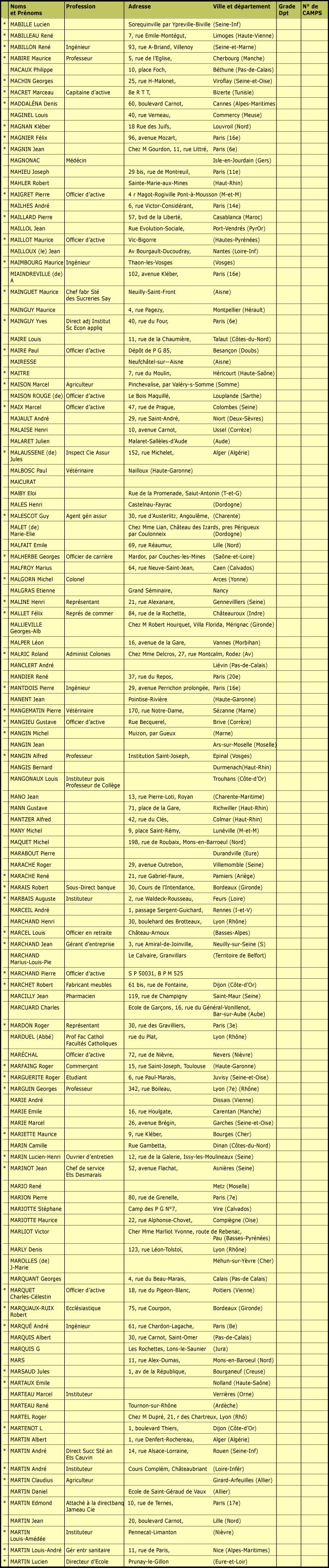 L'étoile (*) placée devant certains noms correspond aux adresses que les dirigeants de l’amicale
