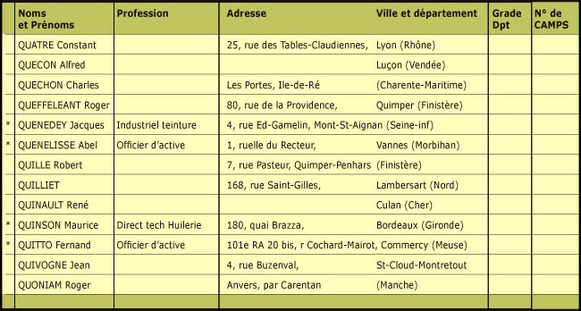 L'étoile (*) placée devant certains noms correspond aux adresses que les dirigeants de l’amicale