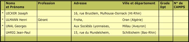 L'étoile (*) placée devant certains noms correspond aux adresses que les dirigeants de l’amicale