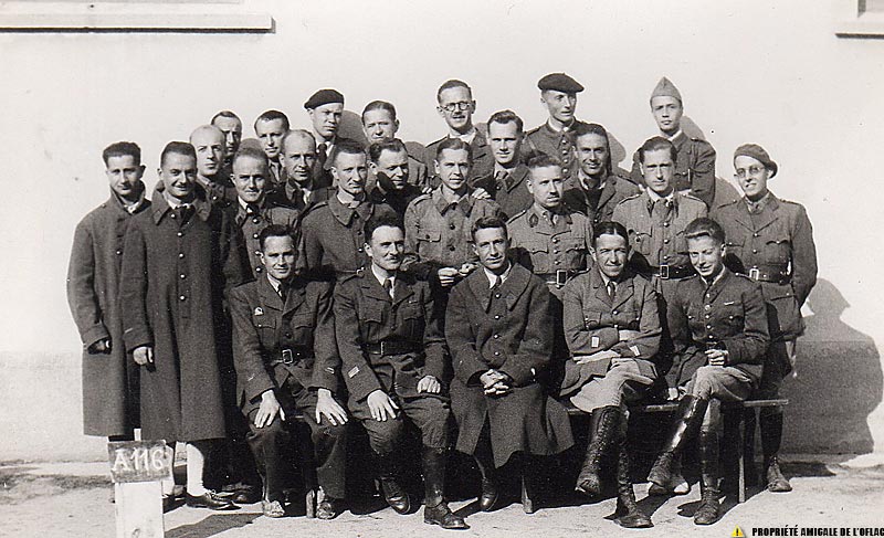 Oflag IIB - Arnswalde : le lieutenant André FROMENTIN est au dernier rang le 3ème en partant de la gauche et portant un béret. Le 6ème en partant de la gauche portant également un béret est le lieutenant François PRUAL, un des fondateurs du Centre d'Entraide. |