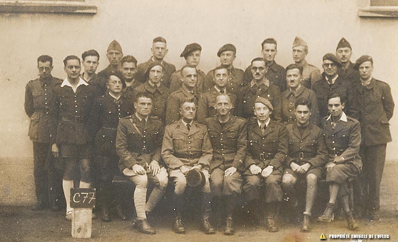 Le seul Officier connu sur cette photo est le lieutenant Pierre DAVID. Il est debout le 5ème en partant de la gauche, derrière un prisonnier avec un béret sur l'oreille gauche et entre un portant un calot et un portant un béret sur l'oreille droite.