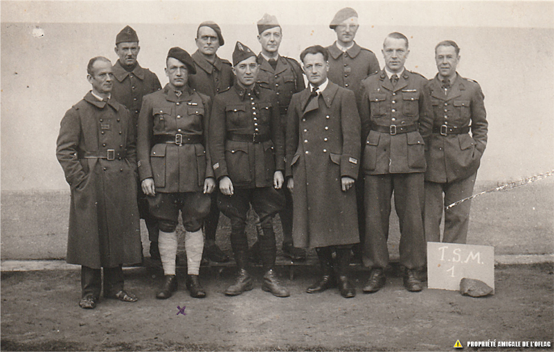 Oflag IIB – Arnswalde : 1er rang de gauche à droite : Capitaine DENIS - Capitaine Maurice LESAINT - Capitaine Jean ROMILLAT - Capitaine Marcel PERE - Capitaine Robert PY - Capitaine Charles PELLION - . Oflag IIB - Arnswalde : 1 rząd od lewej do prawej : Kapitan DENIS - Kapitan Maurice LESAINT - Kapitan Jean ROMILLAT - Kapitan Marcel PERE - Kapitan Robert PY - Kapitan Charles PELLION - .