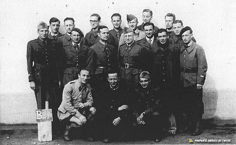 Oficerowie Bloku 3, Barak 15, Pokój 1. Jedyny oficer na tym zdjęciu, które nazwisko jest znane to porucznik Jean HUBERT, drugi od lewej w ostatnim rzędzie okularach. Zdjęcie ofiarowane przez Pania Jean HUBERT.