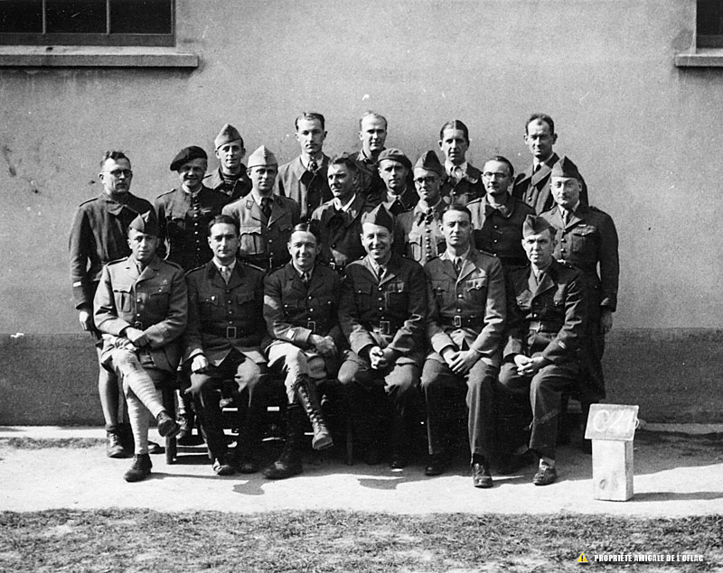 Oflag IIB d'Arnswalde : les huiles du groupe nord. Le capitaine Pierre CARCEL est le premier assis à gauche.