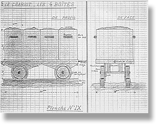 Dessin du chariot aux 4 boîtes pour l'évasion de 1942