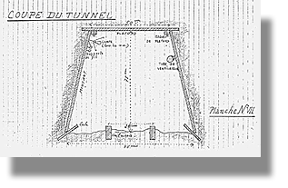 Mais, au départ, nous voyons trop grand, car nous entamons le travail avec une section rectangulaire de 80 x 75 cm . Nous nous rendîmes vite compte, que ces dimensions nous coûtaient trop de bois, aussi au bout de 15 mètres, nous serons obligés de réduire la section à un trapèze de 75 cm de haut et de 50 et 75 cm de base.