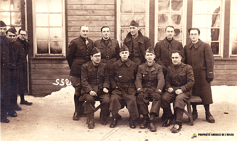 Oflag IID – GROSS-BORN : une photo d’officiers dans laquelle doit figurer le lieutenant Henri RAMOND, matricule 5285 – Block IV – Baraque D, qui, comme les autres prisonniers présents sur cette photo, n’est pas identifié.