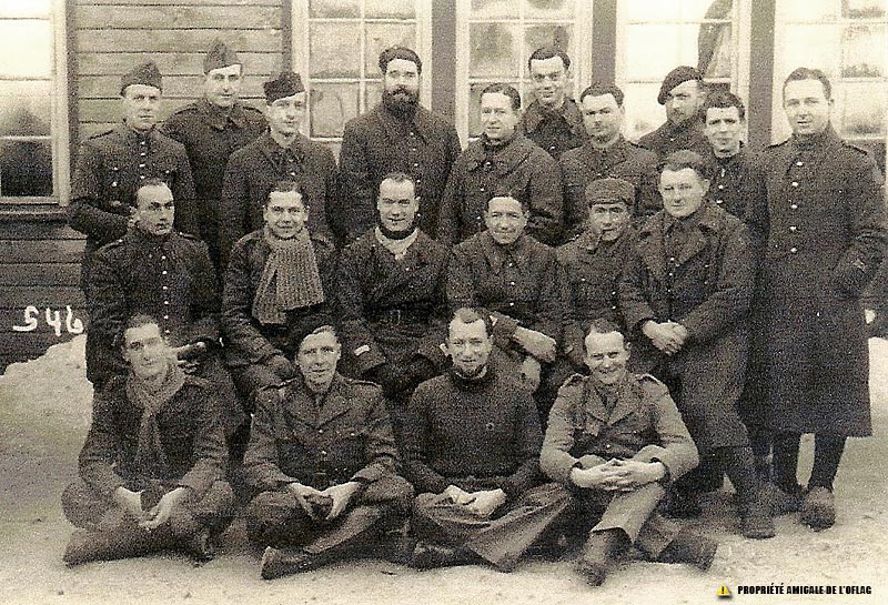 Oflag IID de Gross-Born : « le 1er officier debout en partant de la gauche est le lieutenant Georges DELLOYE et le 6ème en partant de la gauche est son frère Robert DELLOYE