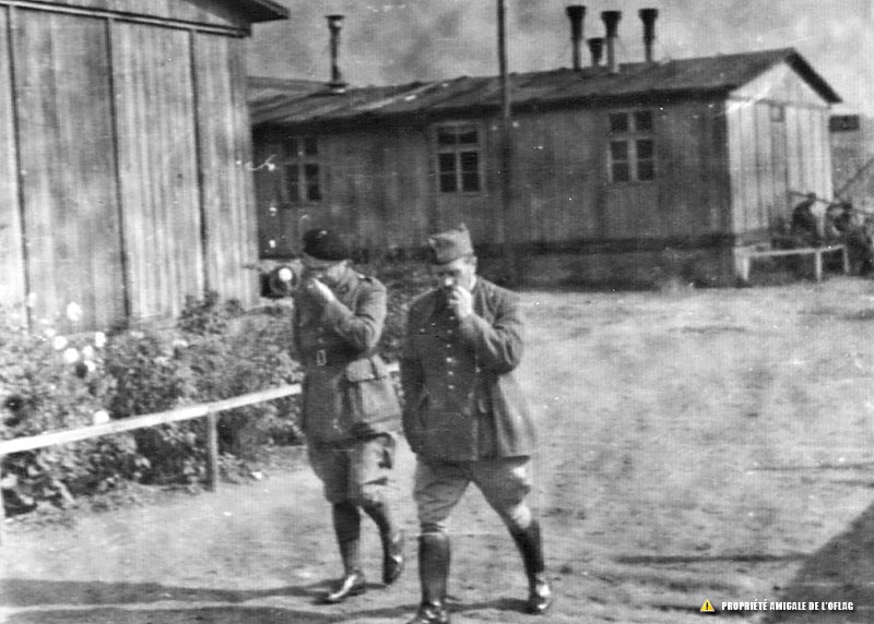 Gross-Born – Oflag IID = « Le Capitaine BARUTEAU (à droite portant un calot) ».