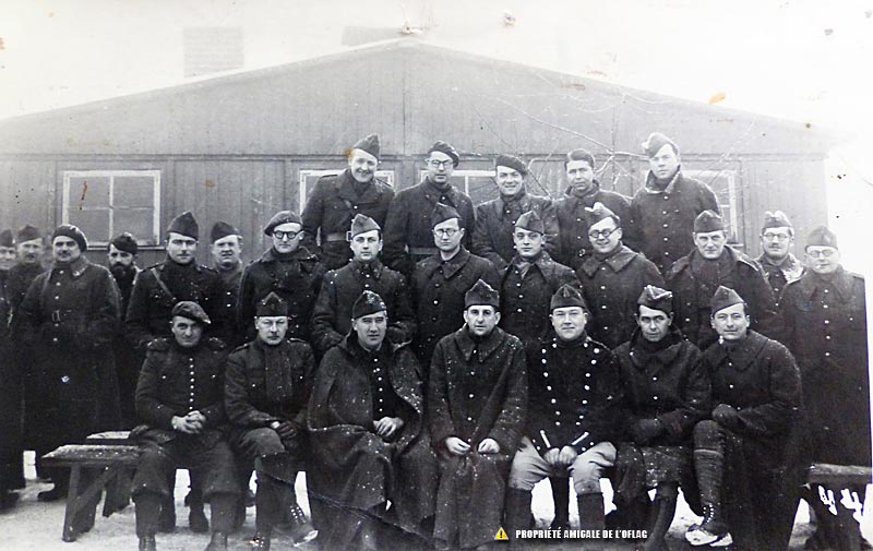 Oflag IID de Gross-Born : le lieutenant Abel HENNERE est le 2ème en partant de la droite au 1er rang des officiers debout.