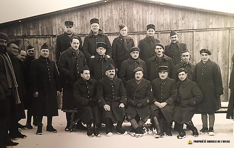 Oflag IID de Gross-Born : le lieutenant Georges MALVARDI est au 3ème rang, le 1er en partant de la gauche (avec un képi). Les noms des 20 autres officiers ne sont pas connus.