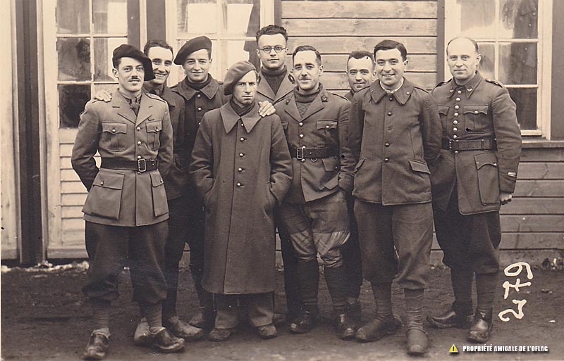 Oflag IID – Gross-Born : le lieutenant Pierre Eugène BIDEGAIN est le 4ème en partant de la gauche. Il porte un béret et un manteau long.
