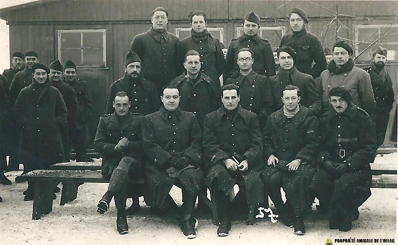 Oflag IID – Gross-Born : le Lieutenant Alphonse AGELOU est certainement présent sur cette photo mais n'est pas identifié. Les noms des officiers présents sur cette photo ne nous sont pas connus.