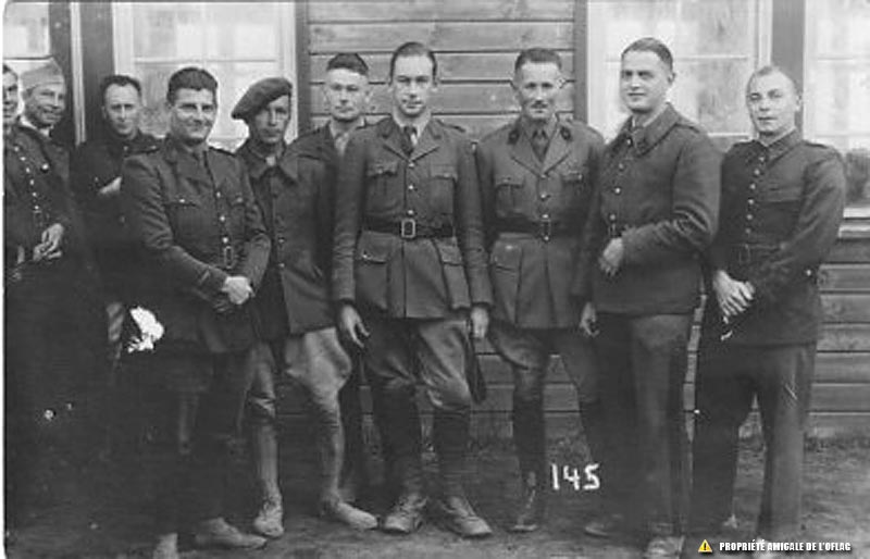 Oflag IID – Gross-Born : le lieutenant Emile DELESALLE est le 4eme en partant de la droite. Les noms des 9 autres prisonniers ne sont pas connus.