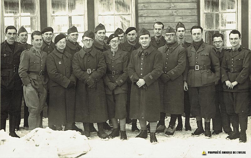 de droite à gauche : 2ème : André BERGERON (son Père d'André BERGERON, le commandant Jean BERGERON, fut prisonnier de l'Oflag XXIB de Schubin), 4ème : Henri GARRIGUES, 7ème : Capitaine Henri DELÉCOLE, 11ème : Amédée SERYES, 12ème : Louis SERRES, 13ème : Jacques OZENNE, 14ème : Albert ALET, 16ème : René DESBOUCHAGES, 17ème : René FOURNAND, 18ème et dernier à gauche : Antoine ? ou Léon ? MERCIER.