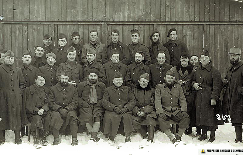 3ème rang debout de droite à gauche : 3ème : Amédée SERYES, 4ème : Henri GARRIGUES, 5ème : René DESBOUCHAGES, 6ème : Louis SERRES, 7ème : André BERGERON (son Père, le commandant Jean BERGERON, fut prisonnier de l'Oflag XXIB de Schubin).