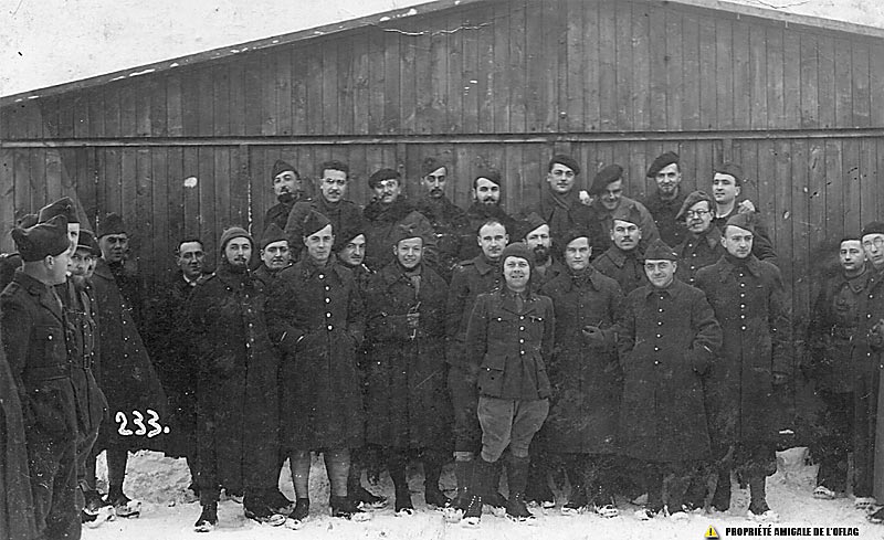 Oflag IID – Gross-Born : le sous-lieutenant Albert-Henri BOULLET est au 1er rang le 1er en partant de la droite (calot penché sur son oreille gauche, sans tenir compte des deux « observateurs » à droite).
