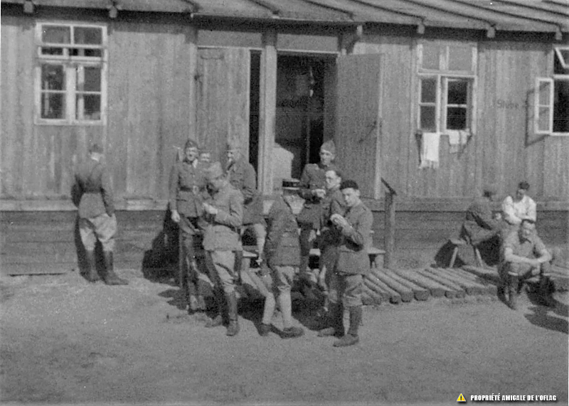 Oflag IID – Gross-Born : les Officiers présents sur cette photo ne sont pas facilement identifiables et leurs noms ne sont pas connus à ce jour Oflag IID – Gross-Born : Oficerowie na tym zdjęciu nie są łatwo rozpoznawalni, a ich nazwiska nie są znane do tej pory. |