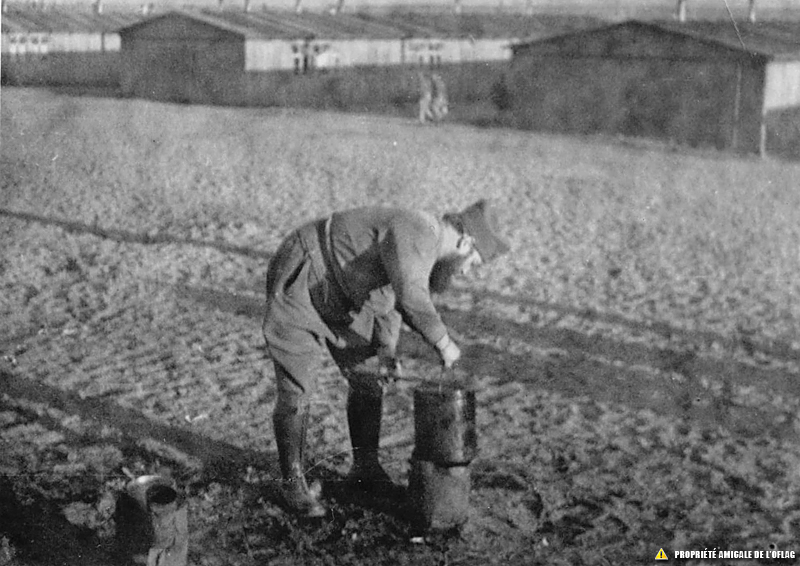Oflag IID – Gross-Born : cet Officier prisonnier, en train de cuisiner en plein air, n'est pas identifié.