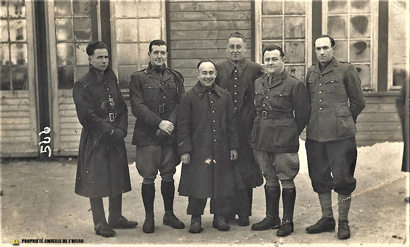 Oflag IID - Gross-Born : Pierre TOUZE est le 1er en partant de la droite. Les noms des 5 autres Officiers ne nous sont pas connus. Oflag IID - Gross-Born : Pierre TOUZE jest pierwszy od prawej. Nazwiska 5 pozostałych funkcjonariuszy nie są nam znane. Oflag IID - Gross-Born : Pierre TOUZE is the 1st from the right. The names of the 5 other officers are not known to us.