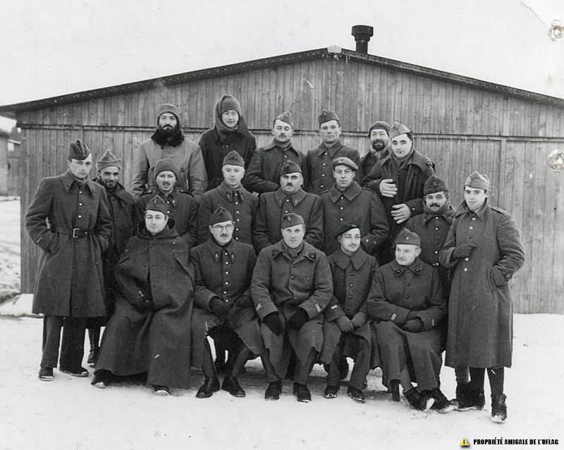 Oflag IID - Gross-Born : W tej grupie 19 oficerów jedynym zidentyfikowanym jest pierwszy stojący po prawej : porucznik Albert MOUISSET. Oflag IID - Gross-Born : In this group of 19 officers, the only one identified is the 1st one standing on the right : Lieutenant Albert MOUISSET.