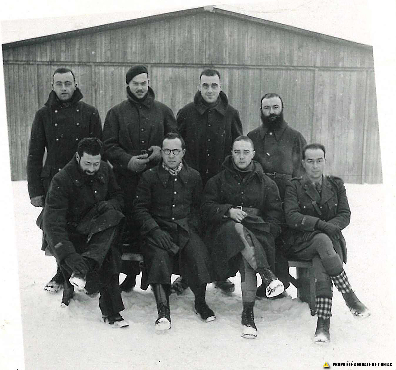 Oflag IID – Gross-Born : 2ème rangée et 1er à gauche : Henry de SANCY. Aucun des 7 autres officiers n'est identifié.