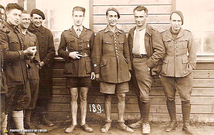 Prisonniers à gauche : spectateurs inconnus sauf le premier en partant de la gauche, dont on voit la main droite est le sous lieutenant Raoul GOICHON. |