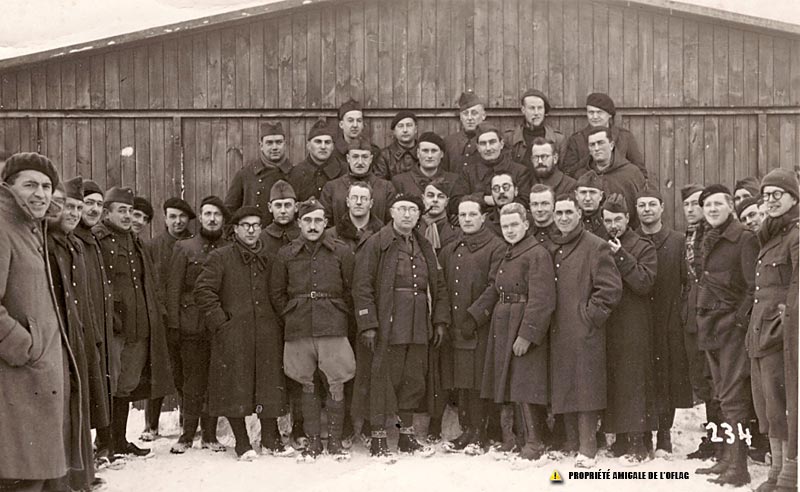 Gross-Born - Oflag IID - Block IV - baracke A : le Lieutenant Pierre BERNET est au 1er rang, le 3ème en partant de la droite.