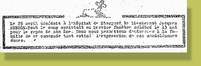 Lieutenant Robert COUDERC rapatrié en juillet 1942 et décédé le 21 mars.