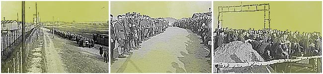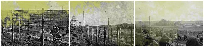 Les prisonniers qui n'ont pas eu l'autorisation de sortir du camp pour accompagner leur camarade à son dernier repos suivent la cérémonie depuis l'intérieur du camp à travers les barbelés. Photo donnée par Monsieur Darius CZERNIAWSKI de Borne Sulinowo. |