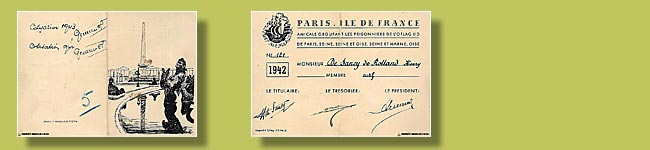 Carte d'adhérent d'Henry de SANCY. Karta członkowska Henry'ego de SANCY. Henry de SANCY's membership card.