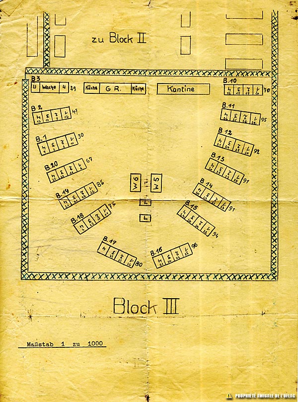 Le total, au moment où ce plan est dressé (par une personne inconnue), est de 1044 prisonniers pour le Block III mais la date de création de ce plan n'est malheureusement pas connue.