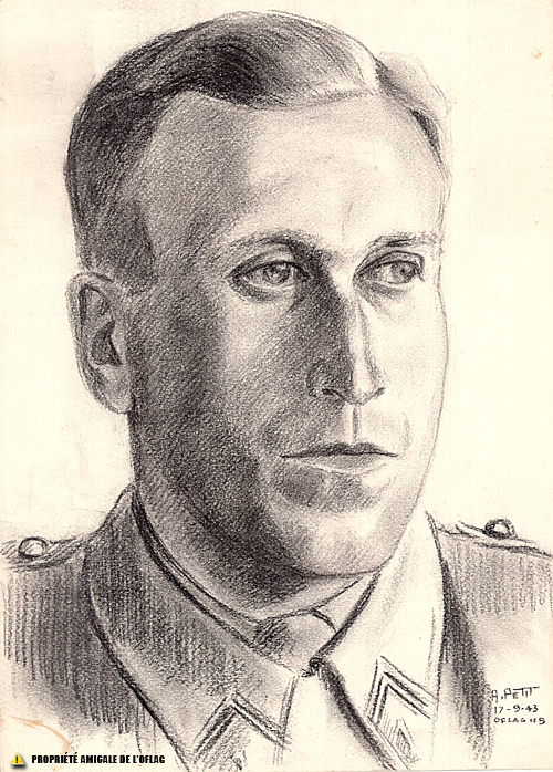 Lieutenant Roger BOUCHERON – Dessin signé « A. PETIT – 17-9-1943 - Oflag IIB ».