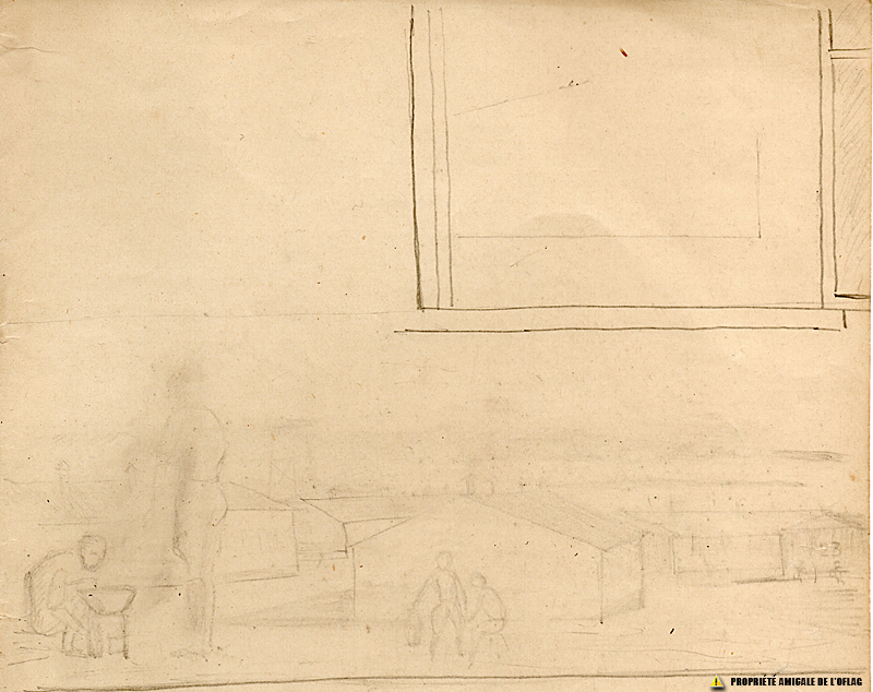 Oflag IID – Gross-Born : esquisse non terminée. Oflag IID - Gross-Born : niedokończony szkic.
