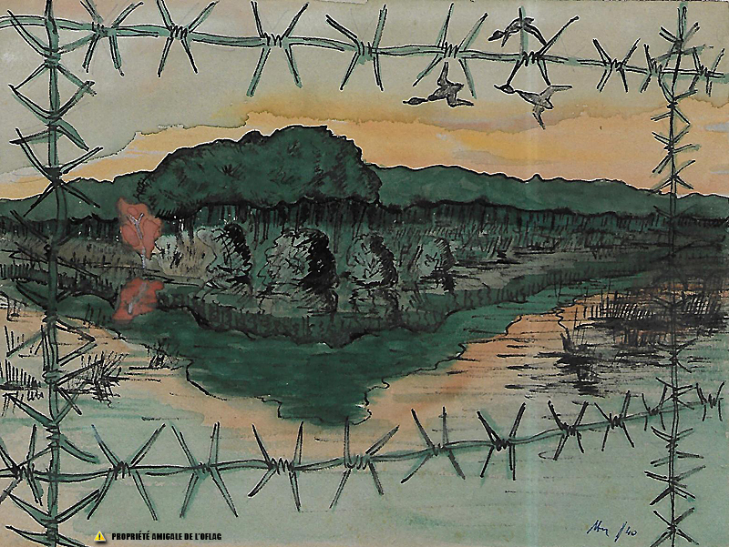 Oflag IID : « le lac proche de l'Oflag IID » - aquarelle d'Henri de SANCY –.
