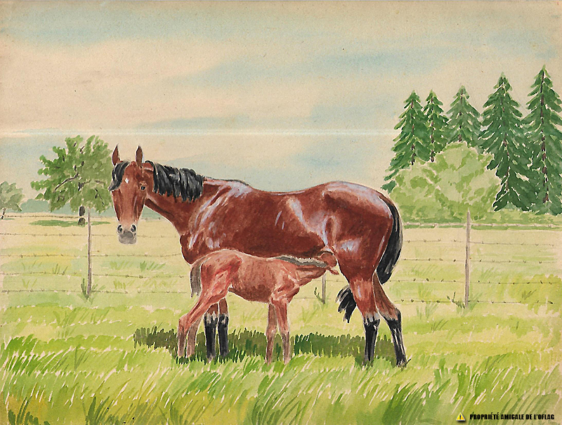 Oflag IID : " Mare and her foal at Janville " by Henri de SANCY.