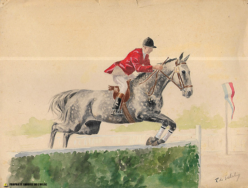 Oflag IID : "Gross-Born - horse jumping" by François d'IRUMBERRY de SALABERRY.