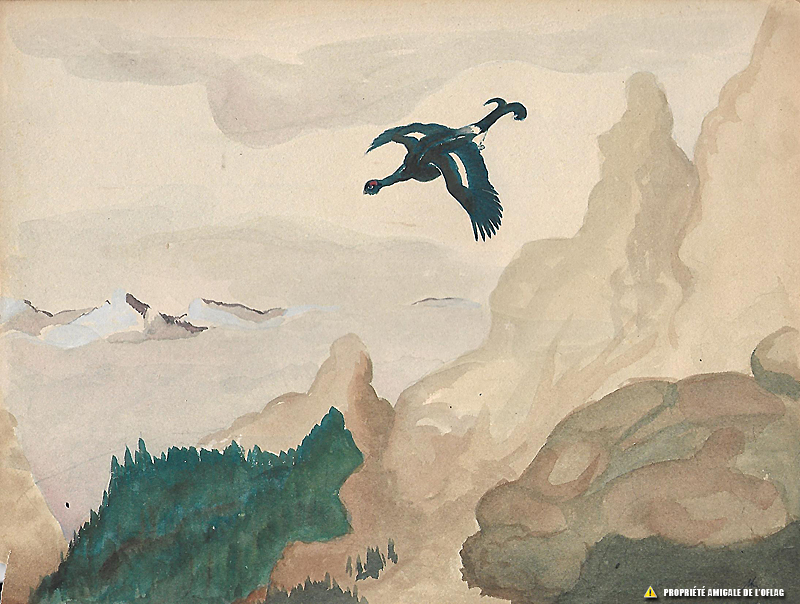 Oflag IID : « petit coq de bruyère ou tétras-lyre en vol » par Henri de SANCY.
