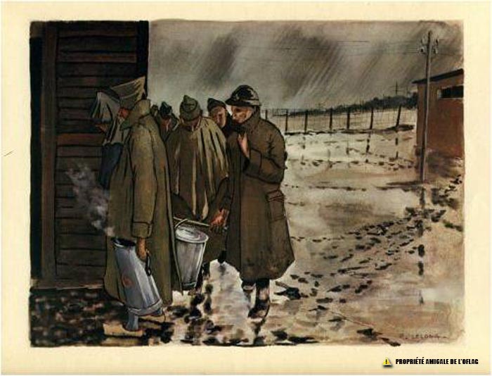 L'arrivée de la soupe à l'Oflag IID - dessin de Paul LELONG