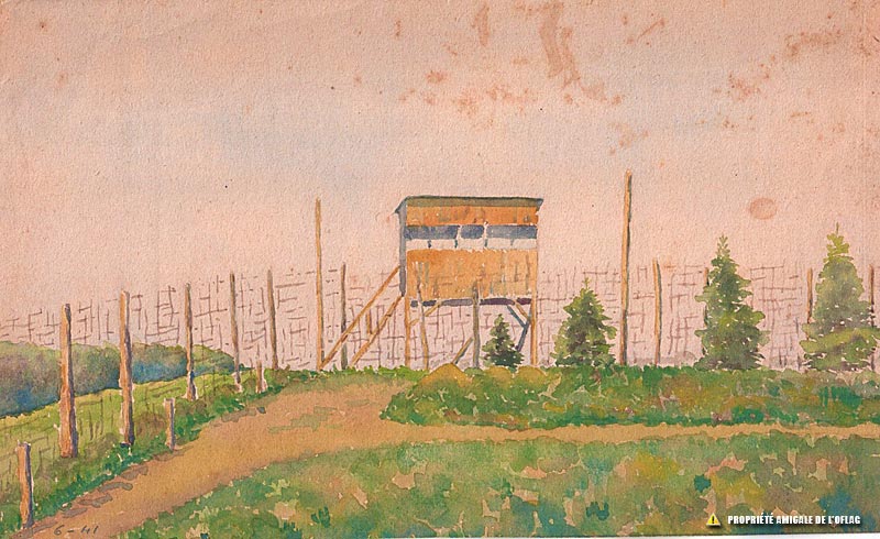 Oflag XXIB – Schubin : clôture et mirador - 1941.