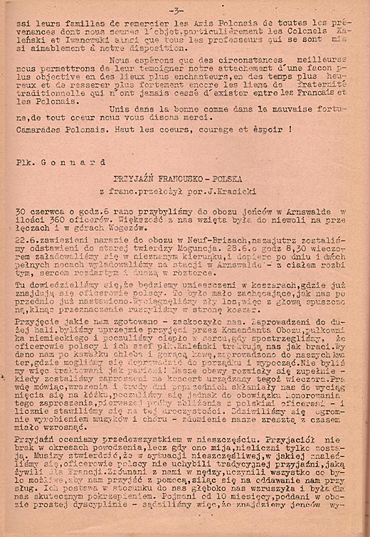 Cet article a été publié dans le journal des officiers Polonais prisonniers de l’Oflag IIB, qui s’intitulait