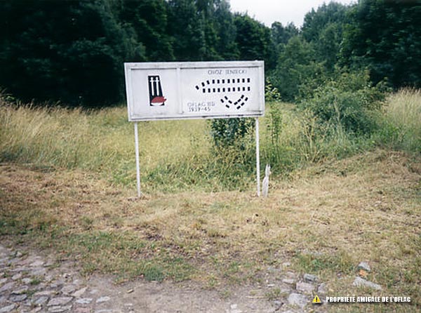 Panneau avec la vasque, la flamme et les 2 épées signalant le site de l'Oflag IID