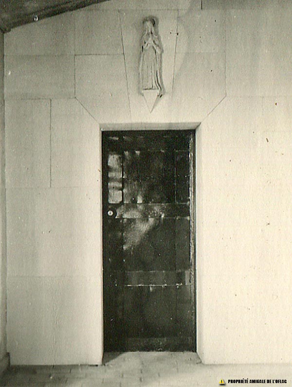 Oflag IID - Gross Born : gros plan sur la porte de la chapelle du Block IV ou bien sur la porte de la sacristie de ce que les prisonniers de l’Oflag IID appelaient « la cathédrale ».