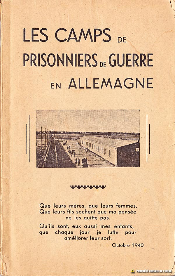 Livre édité par la direction des prisonniers de guerre du secrétariat d’état à la guerre du régime de Vichy. Il décrit les stalags et oflags où sont prisonniers des français. Cet exemplaire date de février 1942 mais fut mis à jour régulièrement durant la captivité. |