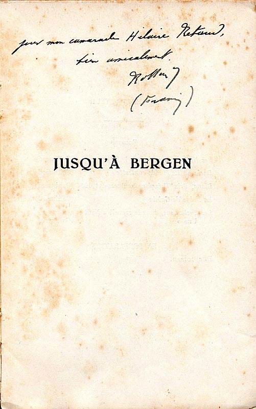 Dédicace de Louis ROLLAND (Louis FRANCIS) pour son livre « Jusqu'à Bergen » à son camarade Hilaire RETAUD. Cette dédicace nous a été donnée par le petit-fils d'Hilaire RETAUD, Emmanuel SILVESTRE, que nous remercions.