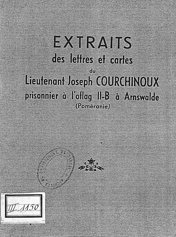 Extraits de lettres et de cartes du Lieutenant Joseph COURCHINOUX, prisonnier à l'Oflag IIB à Arnswalde (Poméranie). Ce document est détenu par le service départemental des Archives du Cantal.
