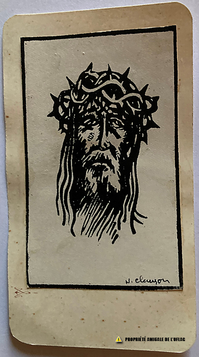 Image of Christ drawn by Henri CLAUZON. On the back his sister wrote: "drawn by my brother, Henri Clauzon, prisoner. (11.5 cm high - 6.5 cm wide).